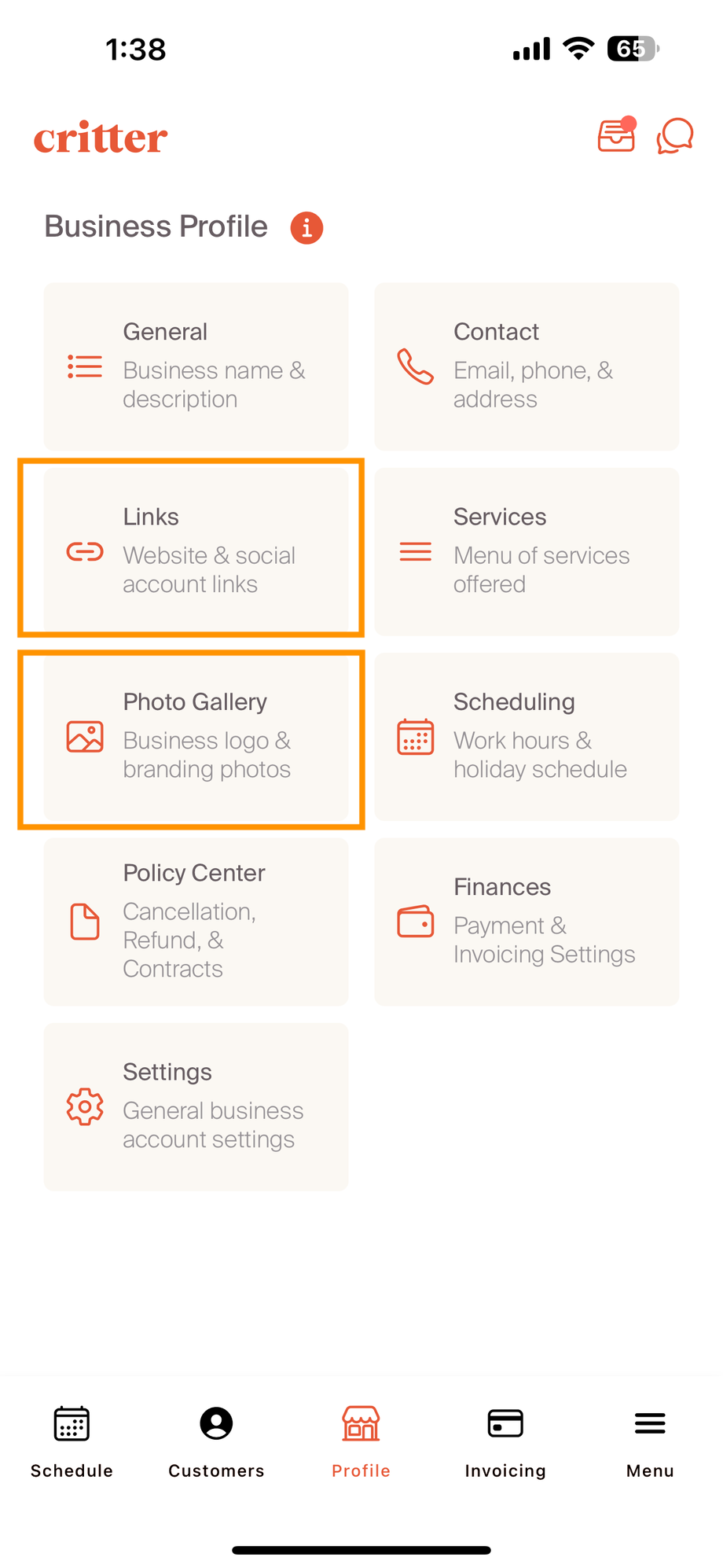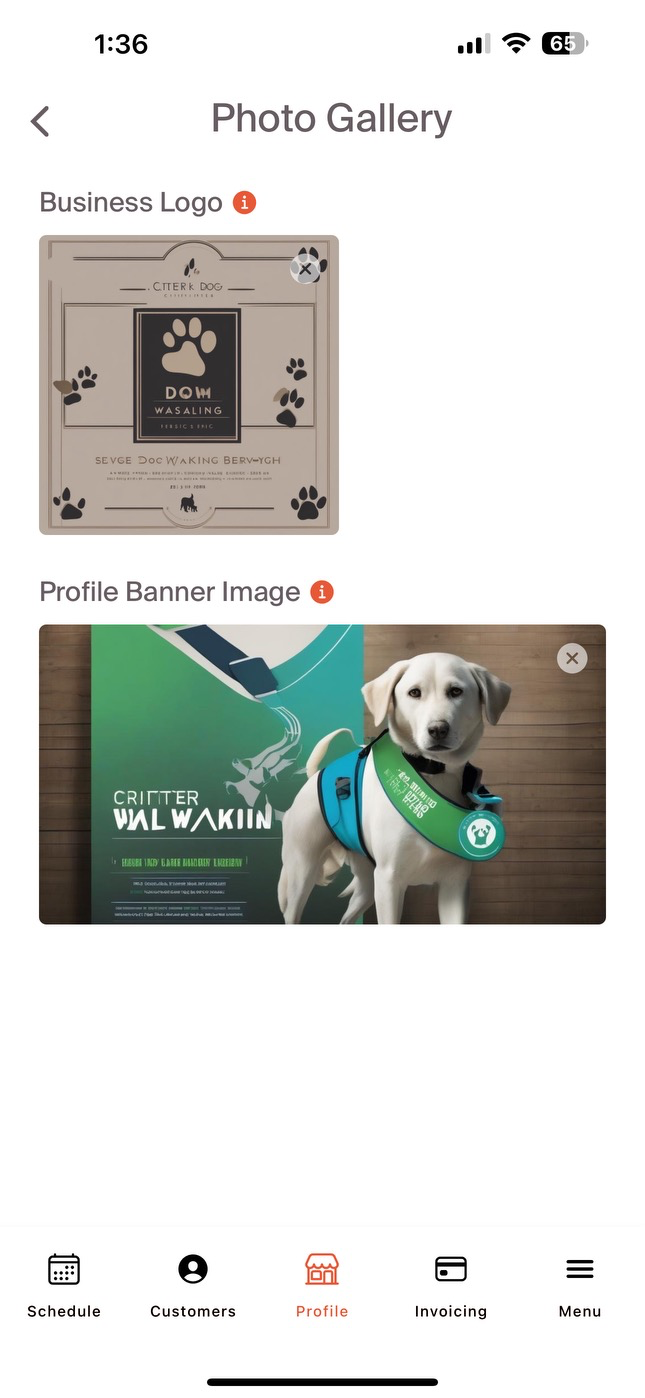 Photo Gallery: Business Logo and Profile Banner Image are two different photos to allow for professionals to add a branded flare to their account. These photos will be visible to customers, so including photos is a big way to set your profile apart.