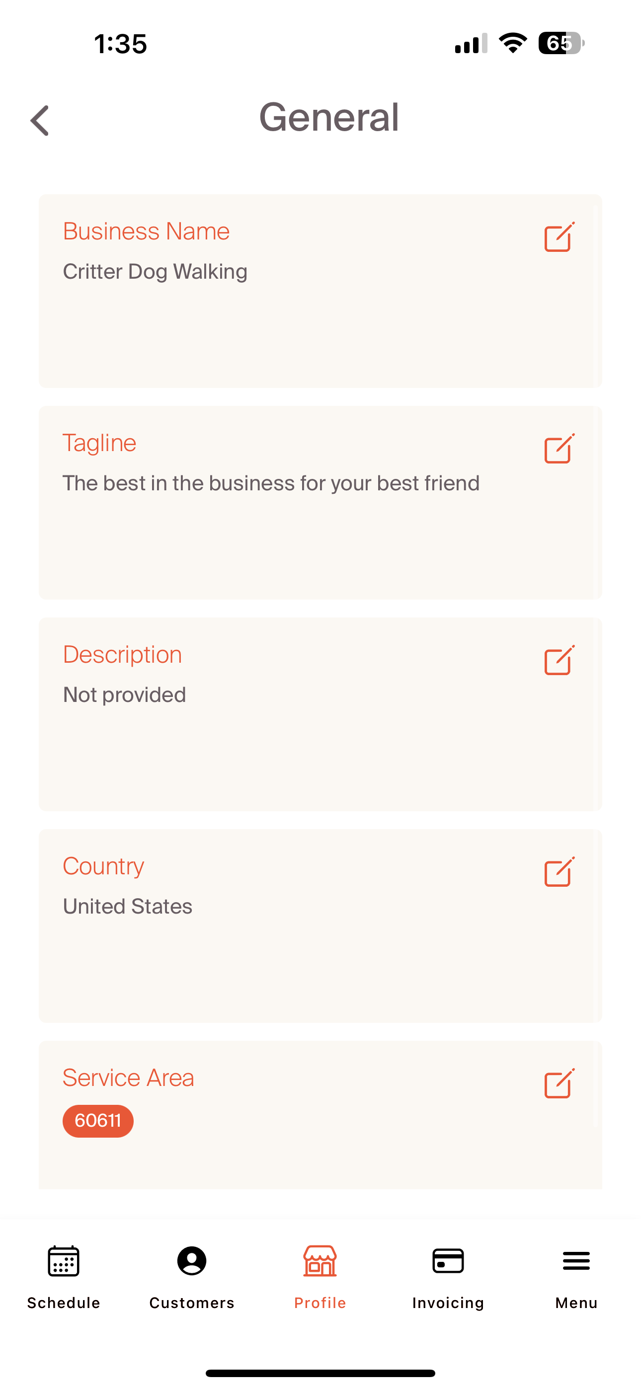 - Service Area: An optional field to provide zip code(s) that you provide services to