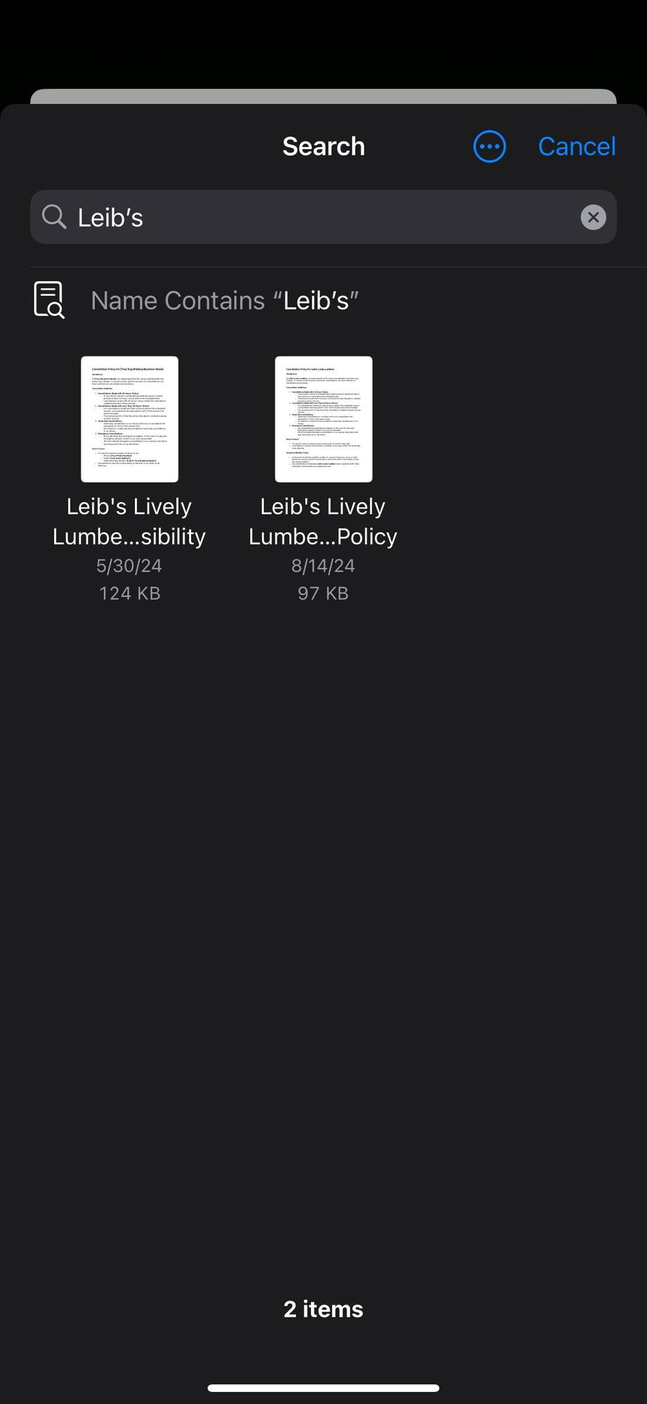 Documents are uploaded from the professional's phone. We suggest loading these as PDFs. For our sample documents, we've included the cancellation policy and liability waiver shown in the screenshot above.