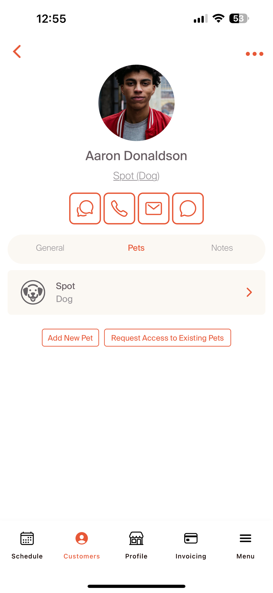 Navigating to the 'Pets' section of the pet profile allows us to connect with our customer's pet profile. This is where we can directly interact with their timeline and Care Plan. By selecting 'Spot', we're taken to our customer's pet profile.