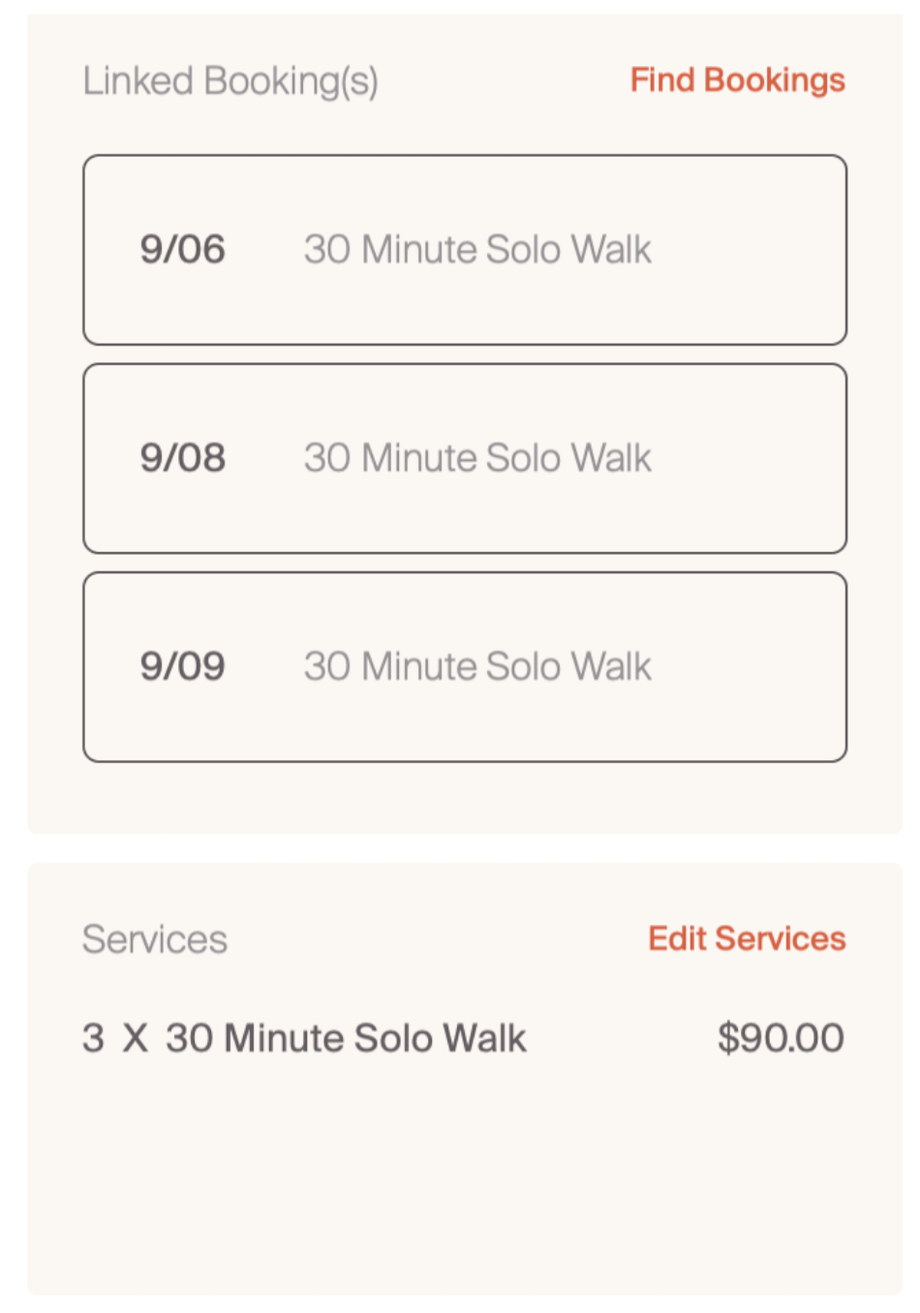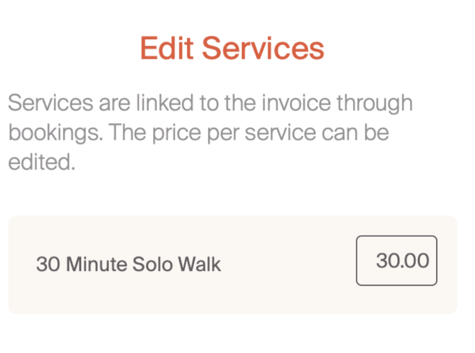 When bookings are added, they will pre-populate in the services section with the corresponding price. This is the default price that is assigned to the service when you create the service in your professional profile configuration
