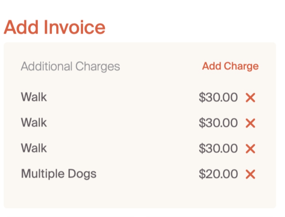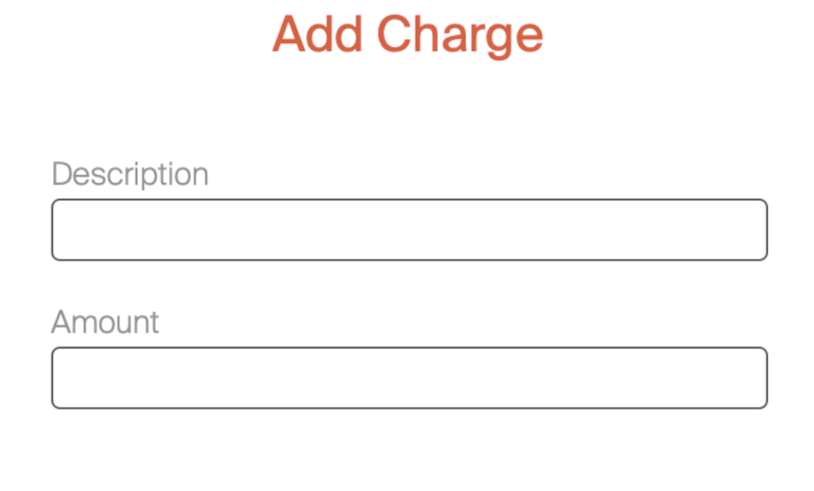Additional charges are added by selecting the "add charge" in the upper right hand corner. This will bring up two fields, one for a text description and one for a dollar amount.